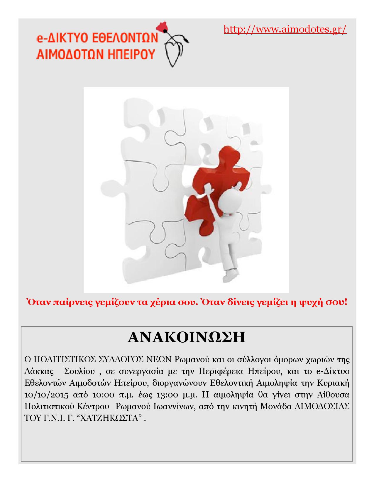 Αιμοδοσία 10 Οκτωβρίου 2015 .